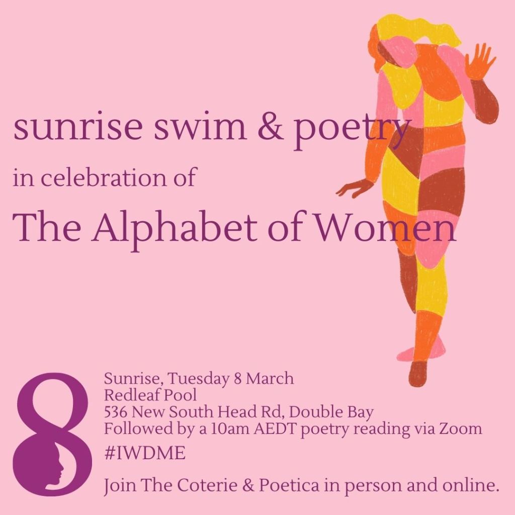 The Alphabet of Women is really here. So we are going to launch it – big time. To coincide with International Women’s Day we have a week full of events in Sydney and one in Murwillumbah thanks to Poets Out Loud.