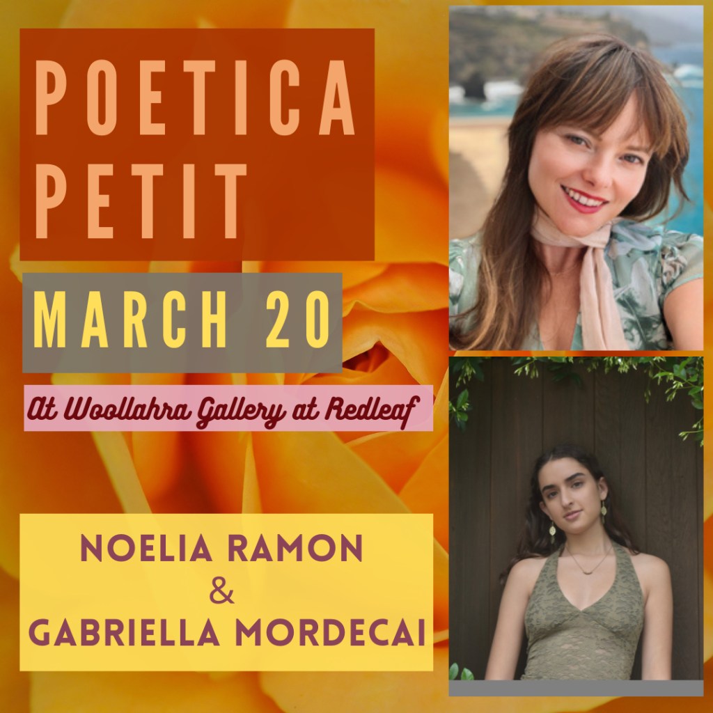 Noelia, Gabriella – we are nearly rhyming this month with our features. It’s going to be one of those magical nights at Poetica Petit at Woollahra Gallery where we hear new words, new music and new voices. A night of firsts. Noelia Ramon has been a Poetica attendee for some time and it brings us great joy to be able to host the pre-launch of her first book The Man in the Photograph — the first of many, she hopes — published by 5 Islands Press. Gabriella Mordecai first performed at Poetica’s Bob Dylan tribute in February 2020 when she sang a duet with her father. Gabriella was 16 at the time and her performance was unquestionably an audience favourite. I am so thrilled to host her first solo performance at Poetica. And of course there’ll be wine and cheese and kombucha and an open mic section. See you there!