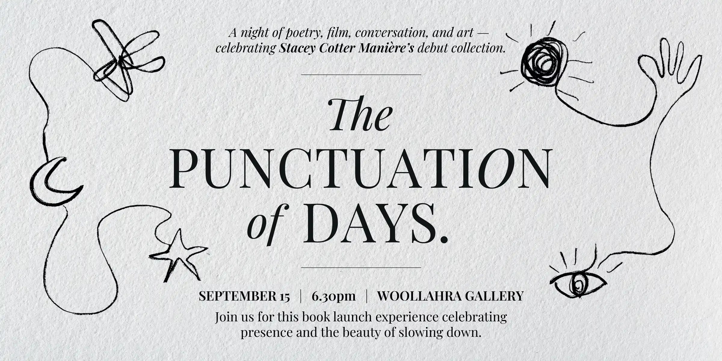 BOOK HERE: https://events.humanitix.com/the-punctuation-of-days-stacey-cotter-maniere