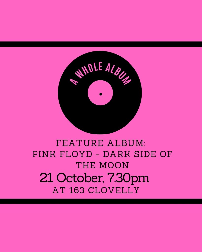 On Oct 21 – it’s A Whole Album – Pink Floyd – Dark Side of the Moon. Hear it like you’ve never heard before with some fun facts thrown in by Guy. https://events.humanitix.com/a-whole-album-oct-21-pink-floyd